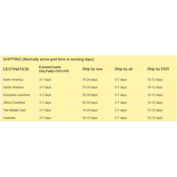E: Flexible payment terms: T/T, L/C, O/A, Western Union, Credit Card, Escrow.